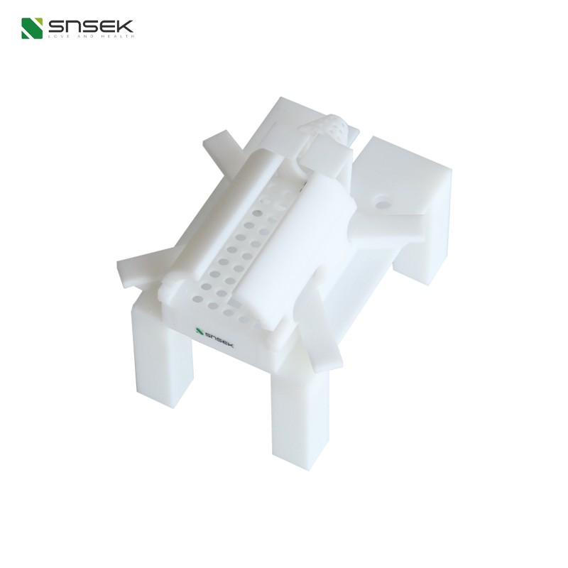 The tip of the newborn mouse brain fixation adapter is appropriately tapered, which can not only firmly clamp the mouse head, but also avoid the damage to the mouse skull caused by using stainless steel as ear bars. The height of the ear bars on both sides and the height of the incisor clamp can be freely adjusted and have scales, which are suitable for experiments at different angles. As the young mice do not have ear canals, a zygomatic bone fixation sleeve is added to replace the tip ear bar, providing a non-invasive and stable fixation method for the young mouse's head.