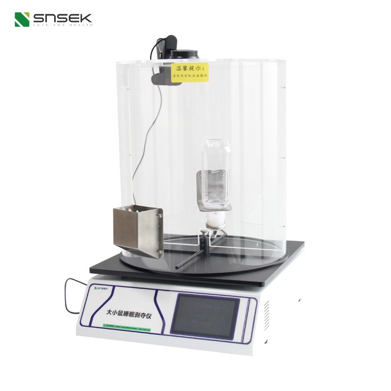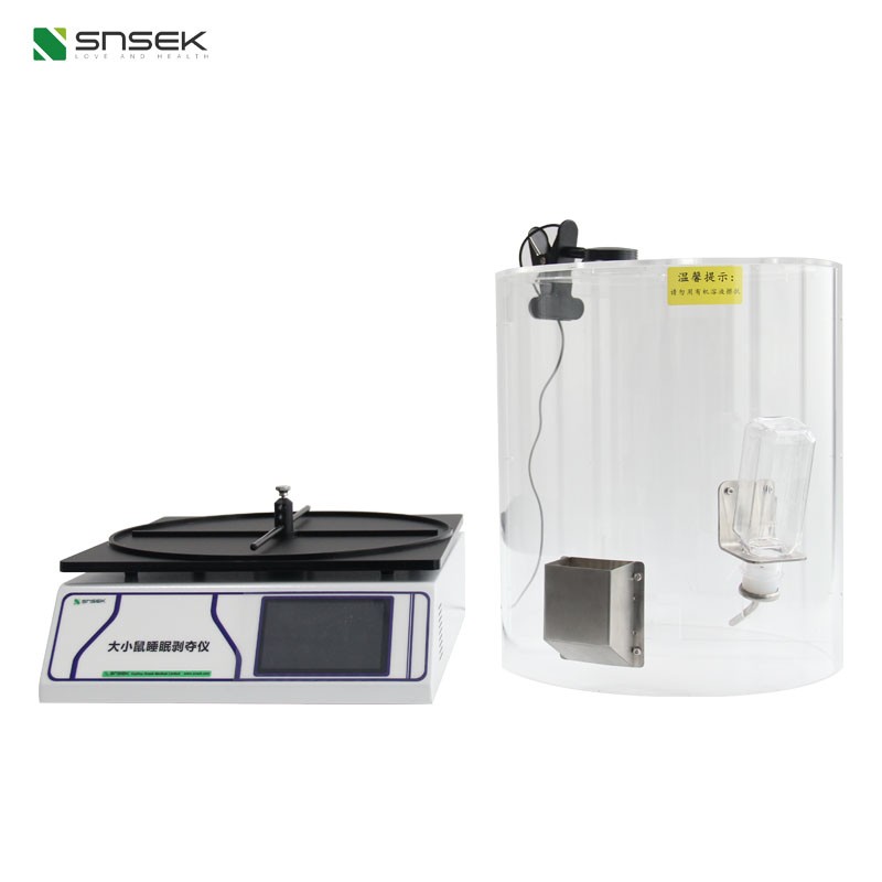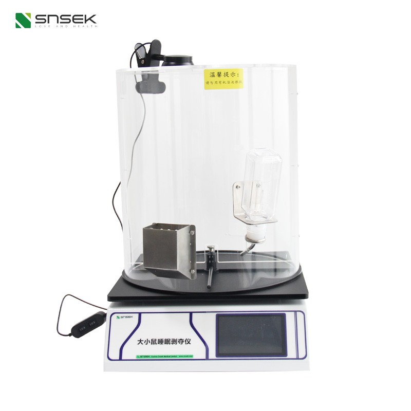The sleep deprivation instrument for rats and mice is a behavioral instrument necessary for studying the recovery of mental and physical strength. Sleep disorders can affect brain thinking and cause diseases, thus turning the human body from a healthy state to a sub-healthy state or even a disease state. In order to study sleep disorders and develop anti-fatigue drugs or health products, preliminary animal model experiments are required, so sleep deprivation equipment is an indispensable instrument. The sleep deprivation instrument is an instrument that does not require animal training and restricts the sleep of animals in a gentle way. The instrument can resist sleep at 360 degrees without dead ends. After the parameters are set, the sleep deprivation experiment can be conducted on rats or mice without human intervention. The parameters can be set on the controller touch screen; the interference rod rotates in the mouse cage at a speed of 1-20RPM, and the direction and rotation frequency can be changed through program compilation to reduce the adaptation of sleep-deprived animals to the environment; the system can provide food, water and sleeping places, and the animal cages are divided into rat cages and mouse cages; the workmanship is exquisite and the structure is novel. The machine is designed with TTL output and input to facilitate EEG detection and other behavioral supporting drivers.